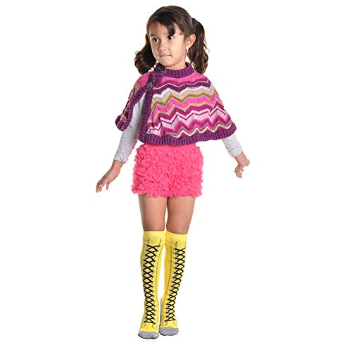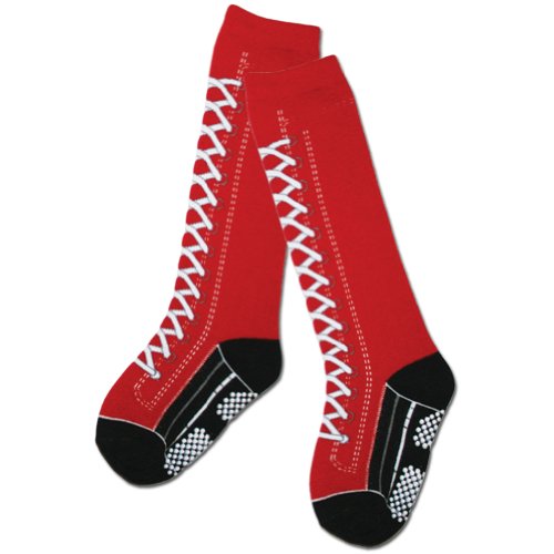 Fun knee high socks in bright colors and fun faux-boots pattern for casual wear, for school, for sports, even as costume accessory. 80% cotton, 20% Spandex for maximum wearing comfort. You get 6 pairs in 4 pretty colors with this purchase. Available in 4 sizes. Size Toddler 1-3 comes with non-skid rubber bottom to increase safety.Feature