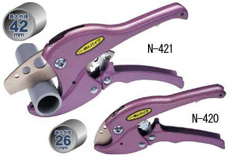 真っ直ぐ切れ、耐久性の良い刃。超軽量。面取り機構付。刃の交換が簡単。 ※サプライヤー直送品 ご注文後2~3営業日後の出荷となります【商品名】N-421 Mr.パイプ42