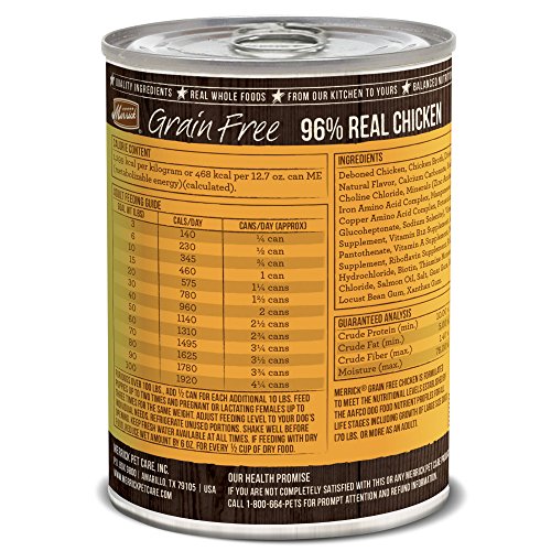 -. Binding : Misc. -. Brand : Merrick -. Label : Merrick Pet Care -. Manufacturer : Merrick Pet Care -. PackageQuantity : 1 -. ProductGroup : Pet Products -. ProductTypeName : PET_SUPPLIES -. Publisher : Merrick Pet Care -. Studio : Merrick Pet Care -. Title : Merrick Grain Free Wet Dog Food, 13.2 oz, 12 count