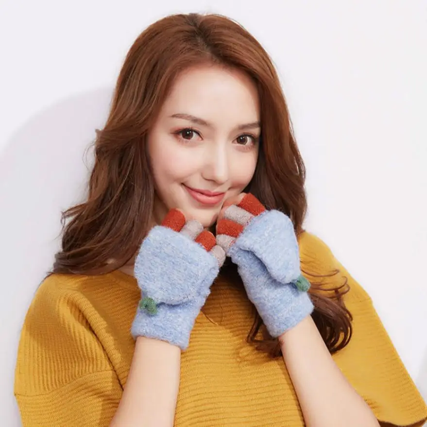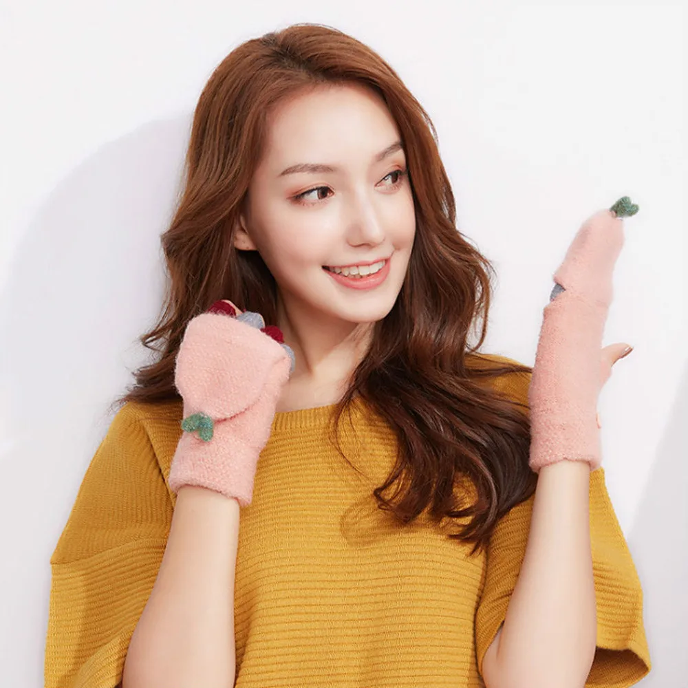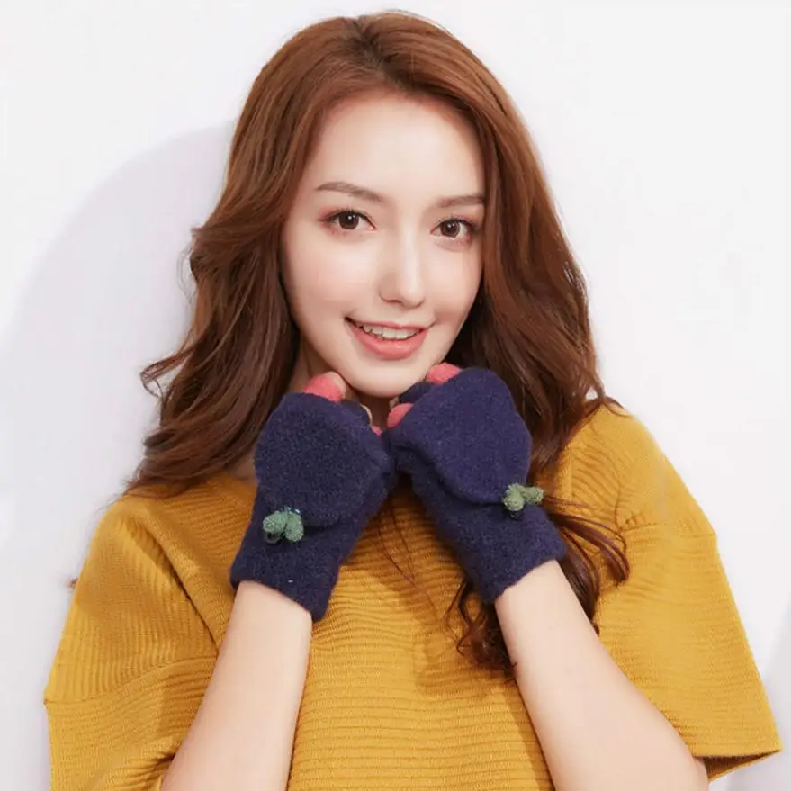 Model Number:Ladies warm plus velvet thick clamshell half finger gloves