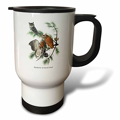 3dRose tm_114062_1 Eastern Screech Owl by John James Audubon, Travel Mug, 14-Ounce, Stainless Steel