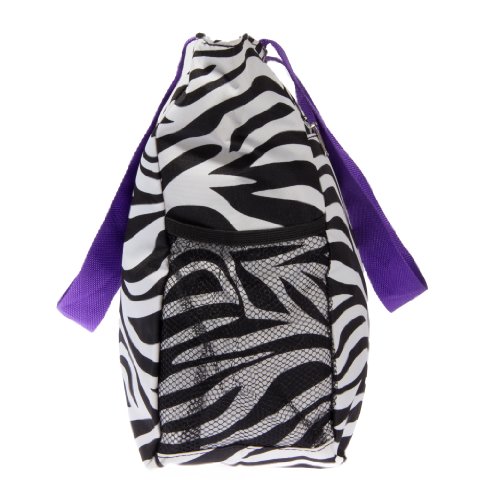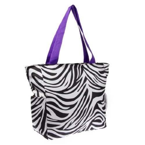 - Title : World Traveler Zebra Print Travel Tote Bag, Black and White with Purple Trim