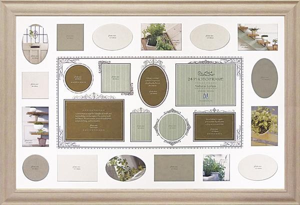 | ロハスなテイストあふれるビッグなフレーム。その大きさをいかして、合計24枚もの写真を楽しく飾る事ができる大収納フォトフレーム。 |