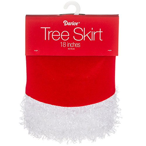 Mini Christmas Tree Skirt 18D Inch Red w White Plush Border