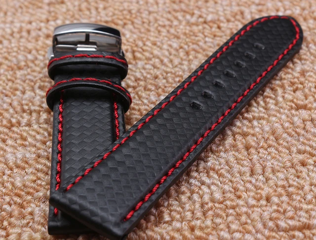 | [해외]시계 밴드 18 미리메터 20 미리메터 22 미리메터 24 미리메터 인기있는 레드 스티치 탄소 섬유 직물 교체 정품 가죽 Watchb 및 Starp 팔찌 |
