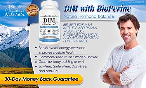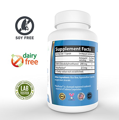 -. Title : DIM (Diindolylmethane) / Extra Strength- 200mg with BioPerine (2 Month Supply). Promotes Beneficial Estrogen Metabolism in Both Men and Women. BioPerine Allows the Body to Better Absorb the DIM. Commonly used for Estrogen-Dominance. Vegan, Soy-Free, Dairy-Free, GMO-Free, Mico-Encapsulated, and Made with Veggie Capsules. The Superior, Most Natural, Safest, and Most Complete DIM on Amazon! A Must Have for Adults Over 40!