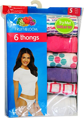 Fruit of the Loom Womens 6 Pack Cotton Thongs Panties (6) Design may vary