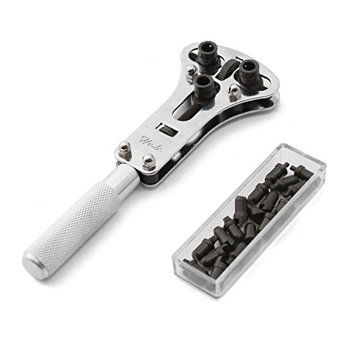 [Ideal Tools]: The different set tools can easy to repair the most of watch problems, like adjustable case opener, Stainless Steel Tweezer, Hammer, Spring Bar Tool, Spring Bar Tool Spare Tips, Watch Strap Spring pins.