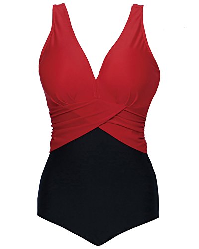 Title : Tempt Me Women One Piece 50s Retro Deep V Front Cross Monokini Swimsuits Red XXL