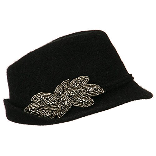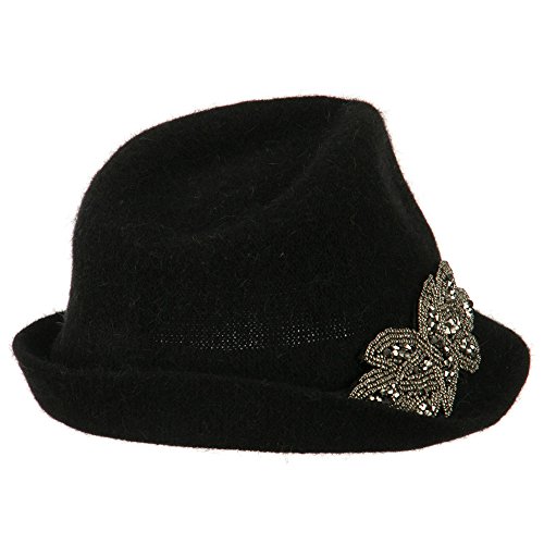 -. Title : Ladies Beaded Motif Angora Fedora - Black