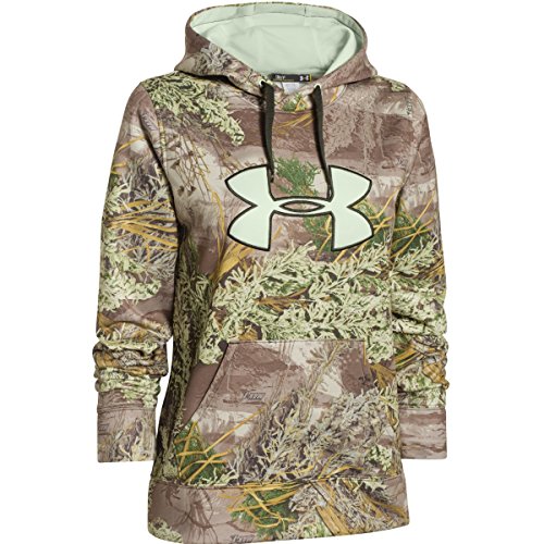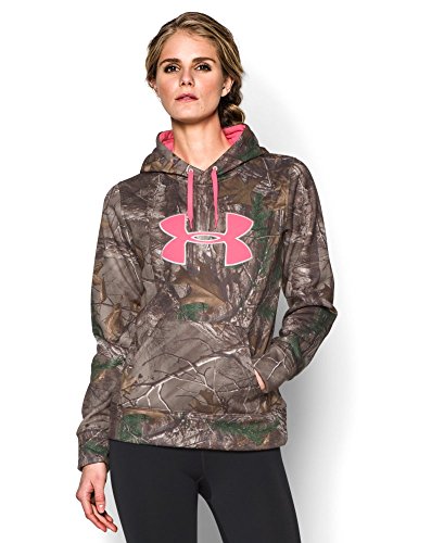FEATURES of the Under Armour Women's Big Logo Hoody Armour Fleece fabric New embroidery logo applique Kangaroo front pocket Drawcord hood
