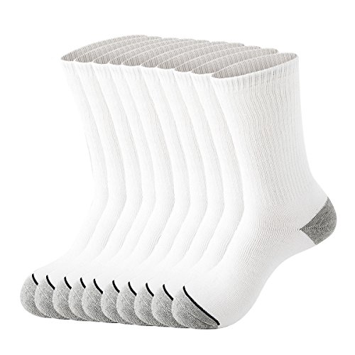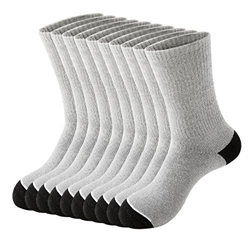 Hushwalk 10 Pack Men's White Terry-loop Cotton Cushion Athletic Sports Crew Socks (10-13, Grey)