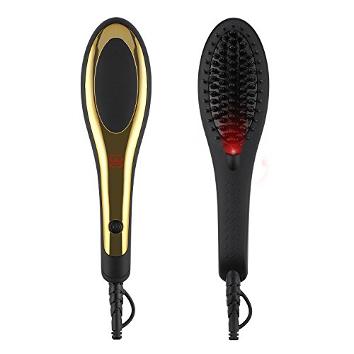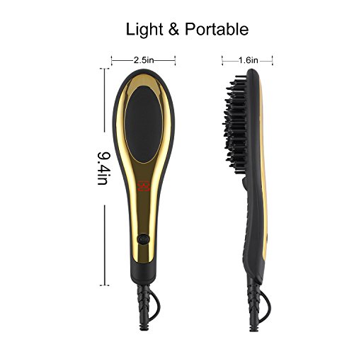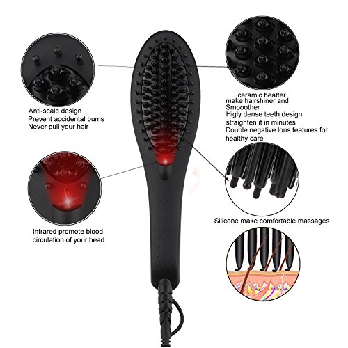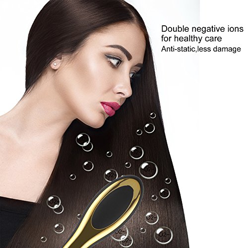- [Advanced Ionic Technology]: The built-in ionic generator of the hair straightening brush emits amount of negative oxygen ions that can interact with the molecular particles in your hair to repair and smooth hair cuticle. They seal the hair cuticle reducing frizziness, split ends, knotting and leaving hair silky and lustrous. Thoroughly nourishing and strengthening hair, prevent hair dry and knotted. Show the hair gets the elaboration, double and bright!