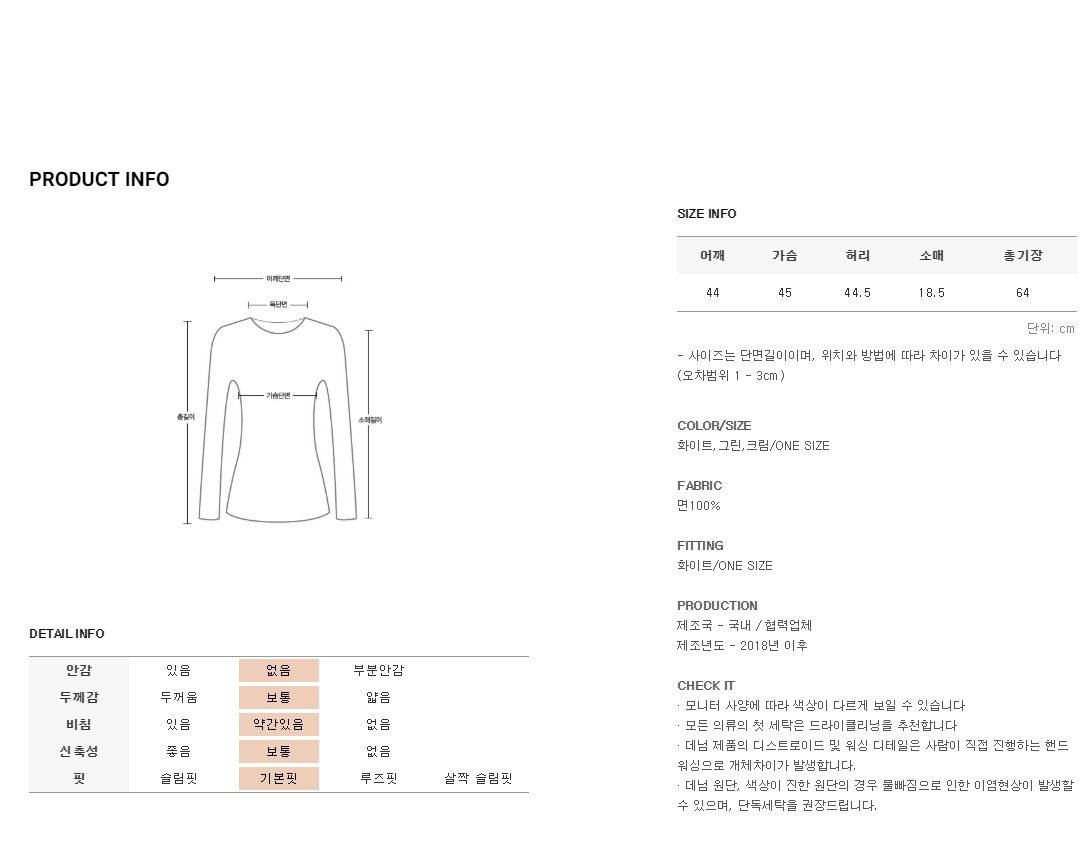 깔끔함을 업시켜줄 라운드넥라인으로 제작되었으며