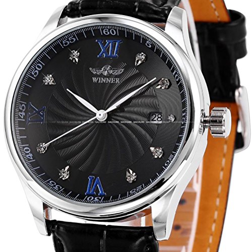 -. Title : GuTe出品 エレガント シンプル 安い ダイヤモンド 上品 カジュアル スタイリッシュ 革バンド 知性的 ブラック メンズ 自動巻き 腕時計
