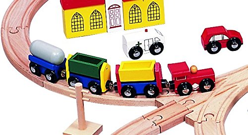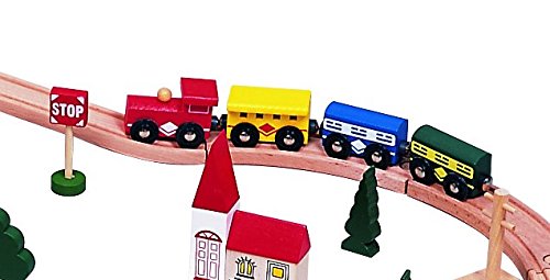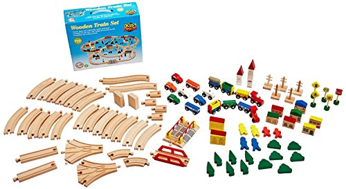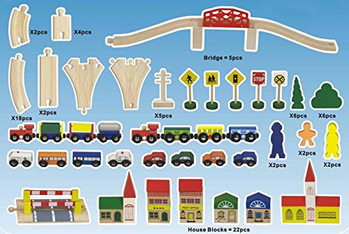 -. Feature : Beautifully crafted solid wooden 100 pc train set; Fun to play triple-loop layout; / Set comes complete with engine, es, a bridge, buildings, city vehicles (police cruiser, ambulance, cars, buses), road signs, trees, and figurines / 100% compatible with Thomas Wooden and Brio Railway System, as well as other major brands / Made from beautiful beech wood, with beautifully vivid colors, greatest quality will last for generations Kids will LOVE this!!! / These train sets meet or exceed CPSC's testing and certification requirements and they are complied with ASTM