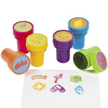 6 ~ Tropical Stampers ~ Self-inking ~ Approx. 1.5" ~ New / Shrink-wrapped ~ Luau Party Favors