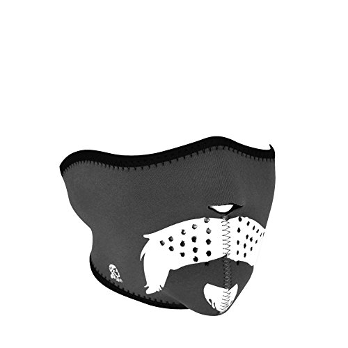 -. Feature : Zan Headgear Glow in the Dark Mo Scruffy Neoprene Half Face Mask Street Motorcycle Helmet Accessories for Men / Neoprene Half Face Mask features full coverage of nose, chin, and cheeks; the neoprene fabric is warm and wind resistant and has nylon bound edges / Hook and loop closure ensures customizable fit / Glow in the Dark Mo Scruffy design / Can be used with or without a helmet, one size fits most