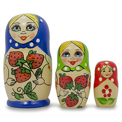 -. Title : 4" Set of 3 Red Strawberries Matryoshka Russian Nesting Dolls