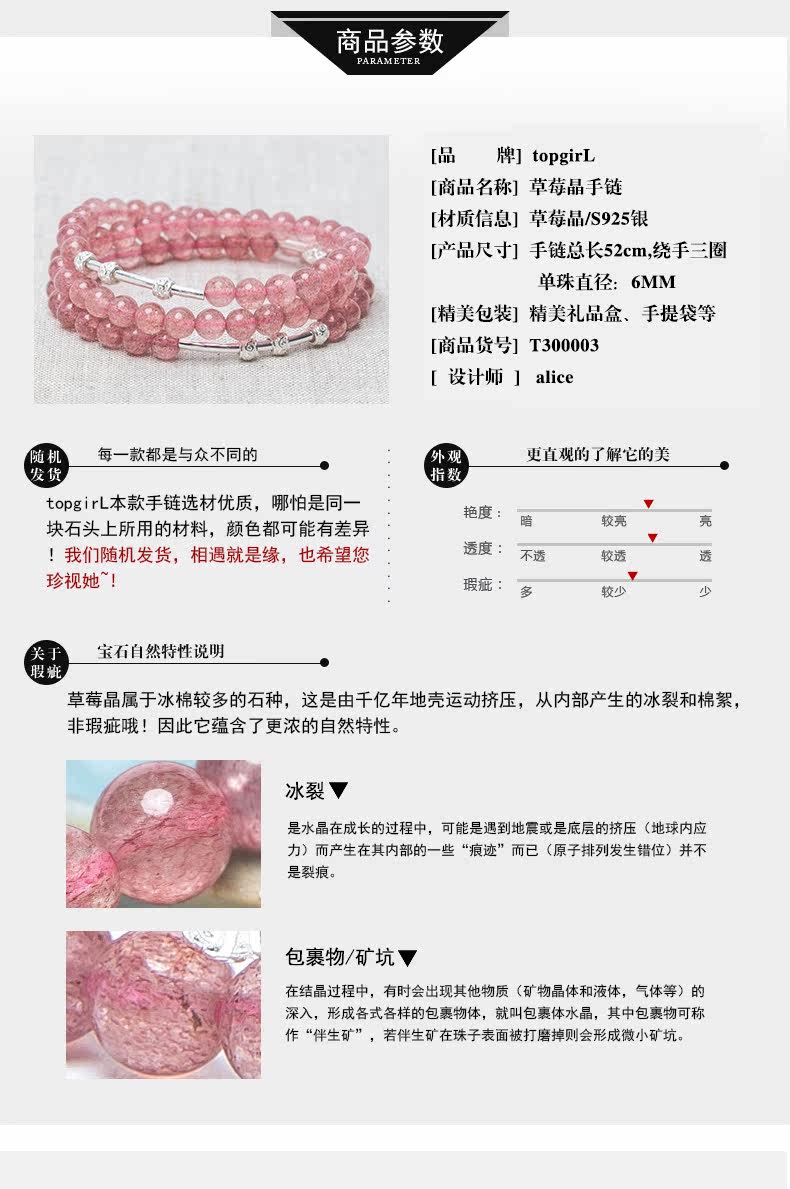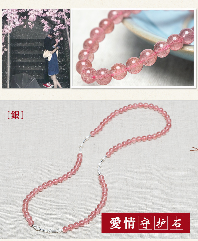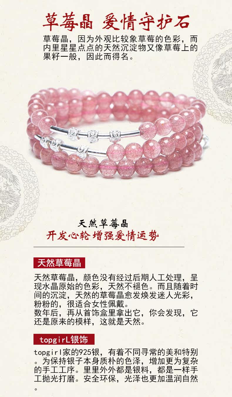 原创天然草莓水晶手链女转运925银珠饰品多圈手串节日礼物
