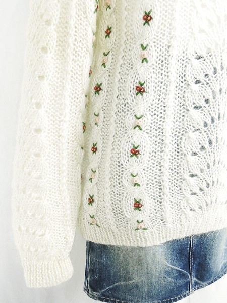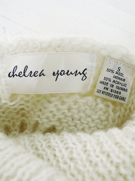 Ladies ブランド カラーオフホワイト メール便不可 コンディション★★★ モデル身長158cm 素材モヘア50%・アクリル50% 表記サイズS 実寸サイズ 着丈 67 cm 身幅 51 cm 肩幅 61.5 cm 袖丈 59 cm ※ウエスト・ヒップ以外は平置き採寸