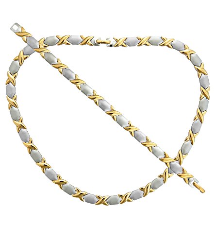 -. Title : Necklace and Bracelet XOXO Two Tone Ladies Jewelry Set Necklace 17.5" Bracelet 7.5"