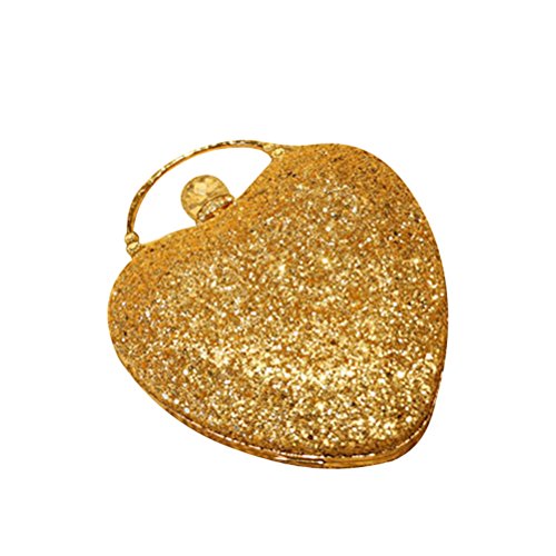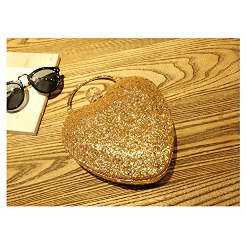 Package Including 1 xGlitter Sparkling Heart Shape Crossbody Bag Rhinestone Evening Clutch Purse Bling Sequins Sling Bag Handbag Bridal Wedding Bag With Chain Strap (Gold) 0