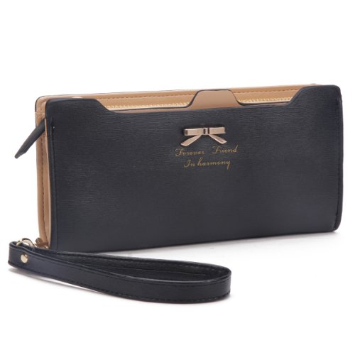 Damara Womens Zippered Faux Leather Wallet Practical Card Case Holder