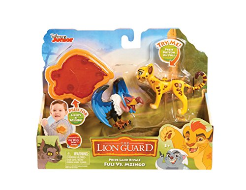 -. Feature : Set includes bonus Mark of the Guard arm band. / Collect both the Kion vs. Janja and the Fuli vs. Mzingo Rival Packs for the ultimate P.R.Ide Land battle! / Requires 3 x AG13/LR44 batteries (included). / Each Rival 2-Pack sold separately. / Ages 3+ / Disney Junior's The Lion Guard Rival 3 Figure 2-Pack features your favorite heroes and foes ready to face-off in battle! Each 2-Pack comes with a bonus Mark of the Guard arm band that lights up and plays music and phrases from the show! This 2-Pack features two of your favorite P.R.Ide Land rivals, Kion and Janja! Press Kion's back to activate his battle action and help him defend the P.R.Ide Lands against Janja sneak attacks! Pair this 2-Pack with the Fuli vs. Mzingo Rival Pack and prepare for the ultimate P.R.Ide Land battle! Each 2-Pack is sold separately. Collect them all