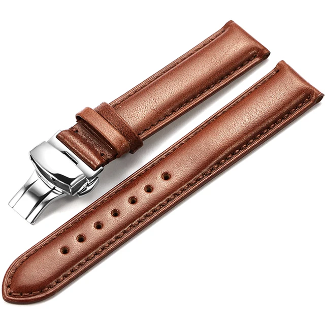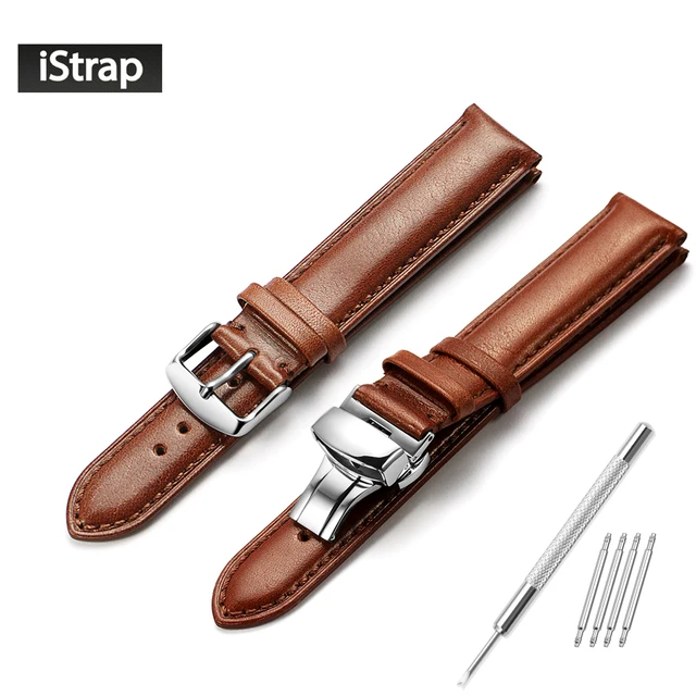 | [해외]Istrap 시계 스트랩 18 미리메터 19 미리메터 20 미리메터 21 미리메터 22 미리메터 다크 브라운 정품 가죽 교체 손목 광택 실버 버클 tissot |