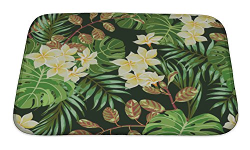 Gear New No Slip Microfiber Memory Foam Tropical Leaves & Flowers Bath Rug Mat, 24" X 17"