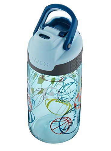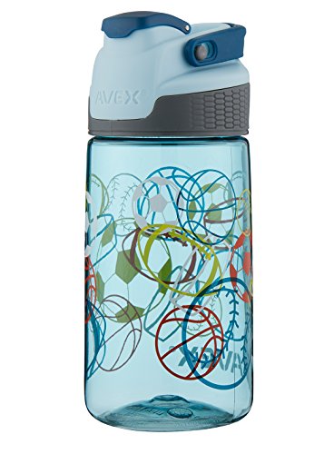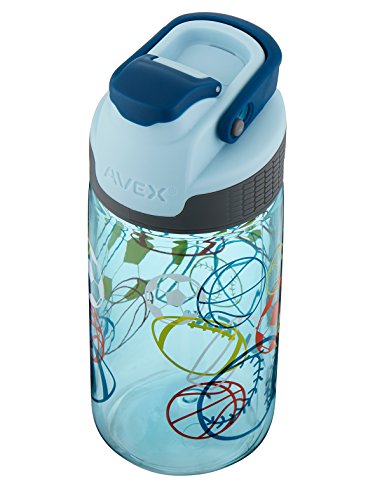 The AVEX freeride water bottle features a patented AUTOSEAL lid with press-to-drink button that automatically seals between sips to eliminate spills and leaks. This BPA-free water bottle also has a spout Shield to protect against dirt and an ergonomic clip-on handle that attaches to backpacks and other gear. Handle folds down out of the way when not in use. This bottle also features glow-in-the-dark lid and graphics. Don't let the looks fool you; this water bottle is rugged and is top-rack dishwasher safe. No plastic odors or taste because this water bottle is made out of FDA-approved, BPA-free Tritan. Water bottle is top-rack dishwasher-safe.Feature