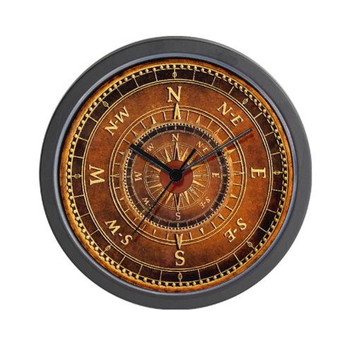 -. Title : CafePress Compass Rose in Brown Wall Clock - Standard Multi-color [Kitchen]