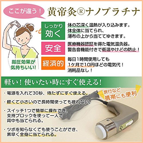 Cold stiffness and softened to warm the pain tired to the core of the body !! stomach of cold sensitivity to cold, stiff neck stiff neck, back pain knee pain neuralgia joint pain sciatica menstrual pain, eyestrain eyestrain, tired of the back head foot, face ear throat upset, insomnia eliminate tinnitus constipation Cramps prostate hypertrophy poor physical condition, ideal for promoting blood circulation immunity improvement warm, such as infertility treatment. Kiteikyu electric moxa device, is a loquat leaf moxa device (raw loquat leaf loquat leaf extract also available) moxibustion of electricity that do not use the fire moxibustion hyperthermia treatment + of acupressure effect navel old navel moxa device children of moxibustion pet moxa. Kiteikyu is, (book searchable by quality control experts "Kenji Kaneko Amazon book") Kenji Kaneko of our manager was developed over a period of five years from 2003 for its own poor circulation improvement. Also focuses in a hurry to put up hot of a, you will temporarily very pleasant warm up the surface of the skin, but do not expect the original thermal effect. The body of the applied side of the tips that heat reaches to the core (attached with papers), shed to find a place painful move the ③ body to shed push ② shed slowly ① lower temperature ④ shed time is adjusted to the physical condition, and simple is. In against the way of tips manual (accessories) and Kiteikyu of how to use video DVD (accessories), the video and search for "Kiteikyu" on YouTube before ☞ purchase and commentary shows the pot by site-specific symptoms you can watch. Back and shoulder blades stable even you Hoguse in the support block (accessories). "It's comfortable loquat leaf moxa device," "it will warm to the core even without a loquat leaf" to warm the jar in a pinpoint and eliminate the pain tired upset stiffness cold. Without resorting to others can be used in the remains of clothes by himself, light small, takes effect often prevents warning function with a safe and secure burns easy operation switching forget prevention function at low temperature switch one. 10 yen per month in electricity bills every day 1 hour use, is saving design with no consumables.