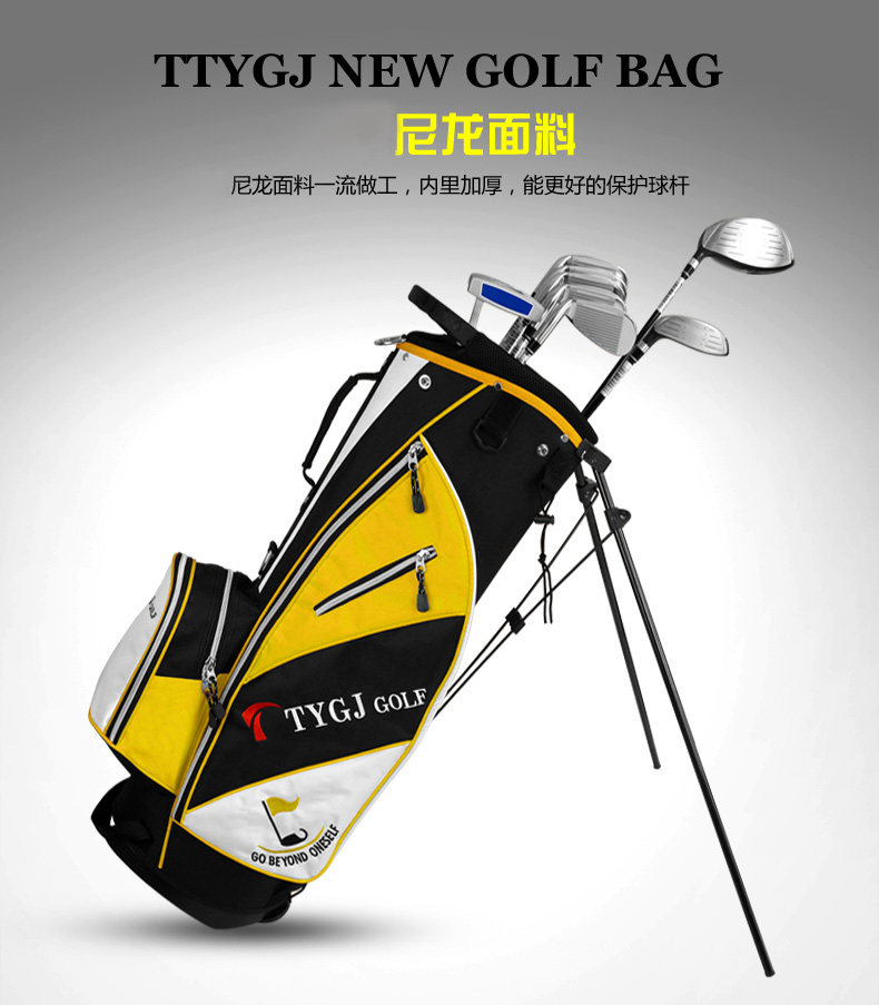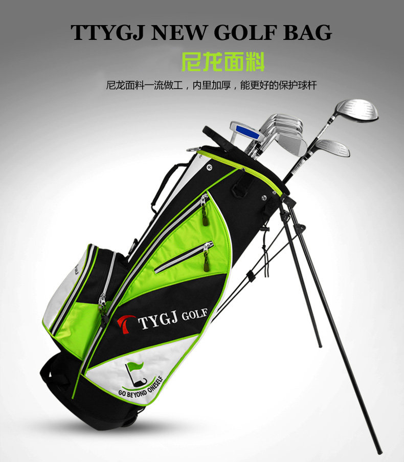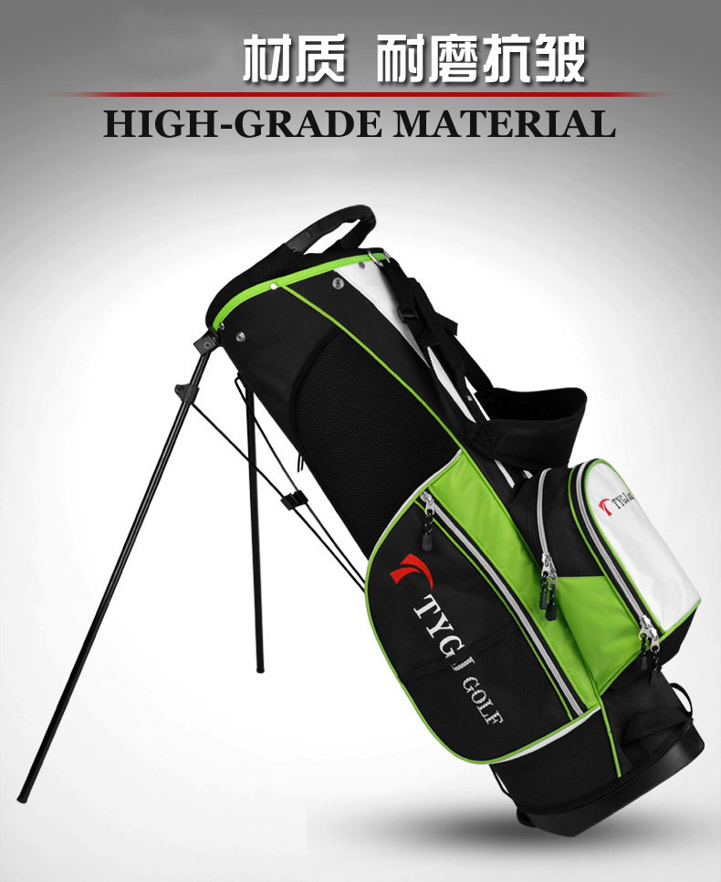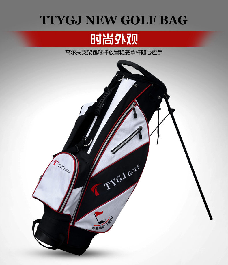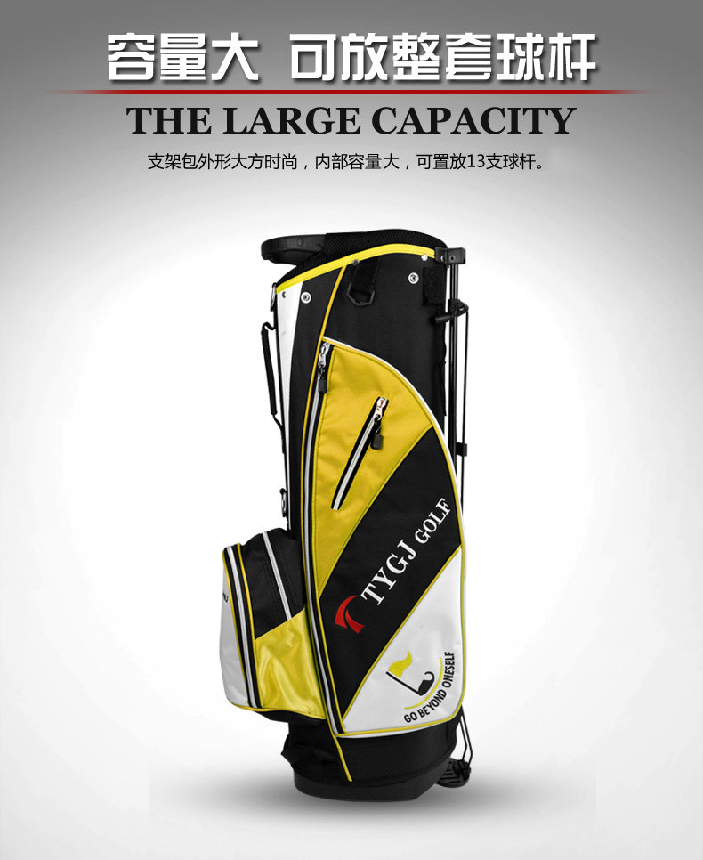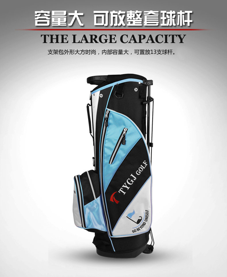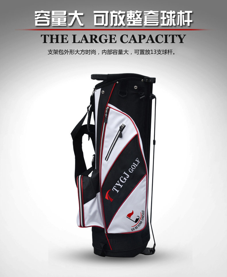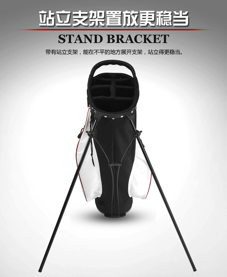 采用的双肩背带,更大的受力面积,更好减轻负重感;也可以直接手提;插杆口共6个,可以根据自己习惯放置球杆,轻松置放整套球杆,避免杆头拥挤碰撞!