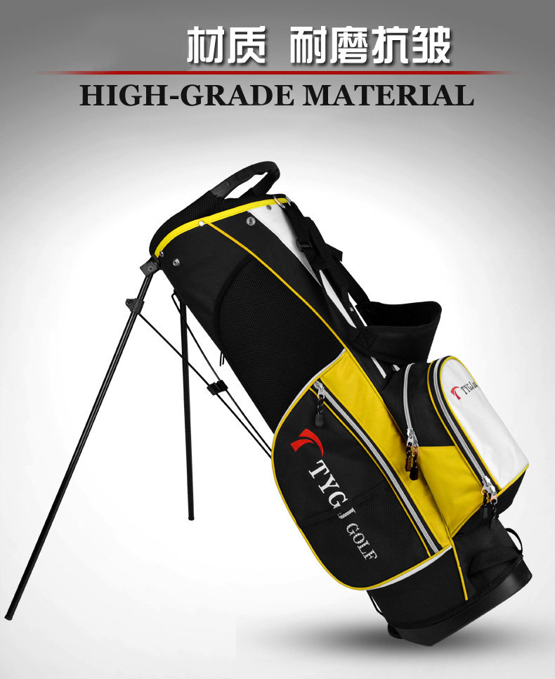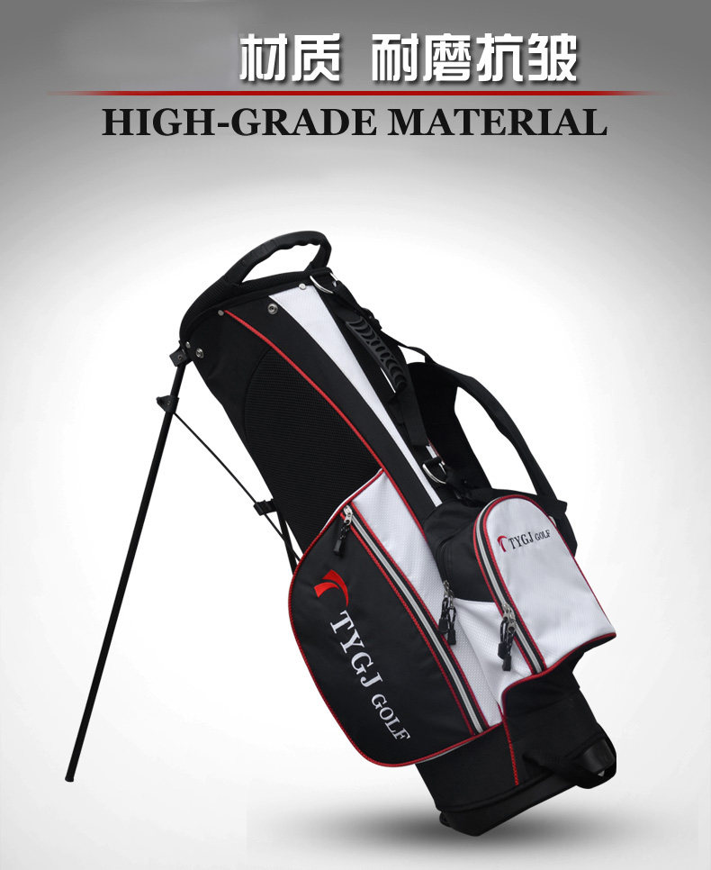 面料:尼龙布,精细的车工,经久耐用,防水防雨。底部:高硬度塑料底座,为球包提供稳定的奠基