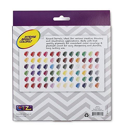Lolliz-Colored Pencils: Assorted Colors. Perfect for the art hobbyist of any age ideal for sketching doodling scrapbooks school projects coloring and more. Each pre-sharpened pencil features a colored barrel that accurately matches the shade for easy identification at a glance. This 7-1/4x7-1/4x1 inch package contains seventy-two colored pencils in assorted colors. Imported.Feature