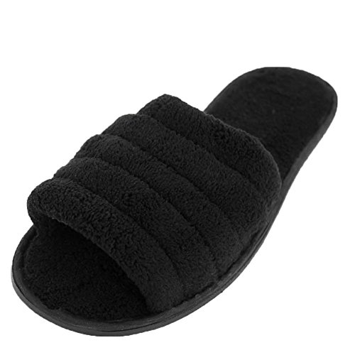 Studio : Easy USA Publisher : Easy USA Binding : Apparel Product Description What better way to get out of bed than to slide into these comfy slippers. They have an easy on open toe design and a soft terry material. The firm yet flexible sole allows you to walk on any surface comfortably. 0