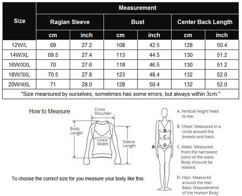 Size:12W, 14W, 16W, 18W, 20W(L,XL,XXL,3XL,4XL)