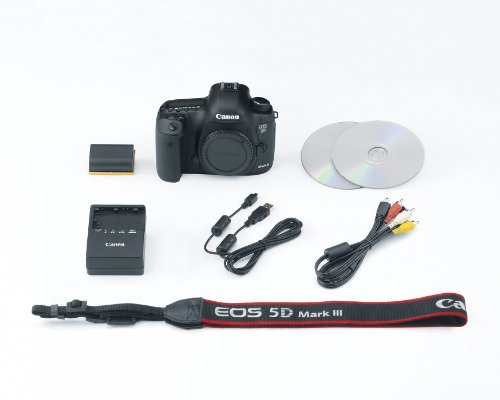 The Canon 5260B002 EOS 5D Mark III 22.3MP Digital SLR Camera Body (lens required and sold separately) with supercharged EOS performance and full frame, high-resolution image capture is designed to perform. Special optical technologies like 61-Point High Density Reticular AF and extended ISO range of 100-25600 make this it ideal for shooting weddings in the studio, out in the field and great for still photography. Professional-level high definition video capabilities includes a host of industry-standard recording protocols and enhanced performance that make it possible to capture beautiful cinematic movies in EOS HD quality. A 22.3 Megapixel full-frame Canon CMOS sensor, Canon DIGIC 5+ Image Processor, and shooting performance up to 6.0fps provide exceptional clarity and sharpness when capturing rapidly-unfolding scenes. Additional technological advancements include an Intelligent Viewfinder, Canon's advanced iFCL metering system, High Dynamic Range (HDR), and Multiple Exposure.Feature