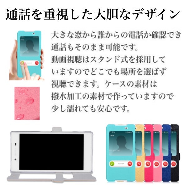 大胆な窓付きの手帳型ケース。 受話画面で誰からかかってきたかを