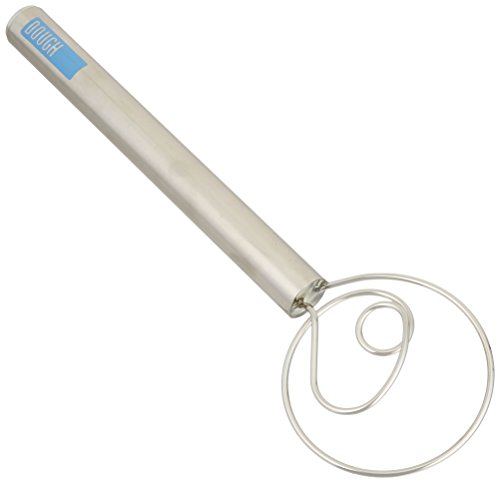 Studio : Tovolo Publisher : Tovolo Binding : Kitchen Product Description The 12" dough whisk is a classic dough hook shape that thoroughly combines wet and dry ingredients for dough or pastry making. Also great for folding in delicate ingredients. The flow-through wire design blends ingredients thoroughly and gently. The thick wires made of durable stainless steel are able to cut through dough easily. This whisk is dishwasher safe. 0