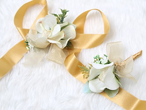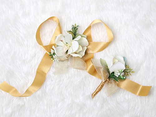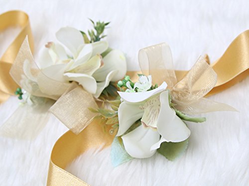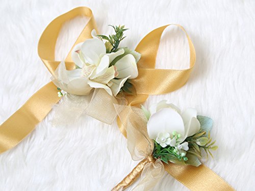 Tropical Wedding Prom Wrist Corsage Mokara Orchids and Boutonniere Set (Gold theme)