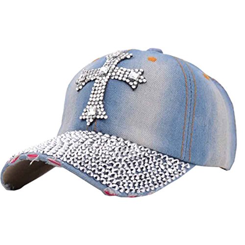 -. Title : Mwfus Bling Cross Crystal Rhinestone Outdoor Cycling Baseball Cap Denim Sunscreen Hats
