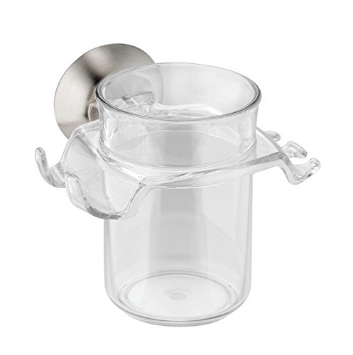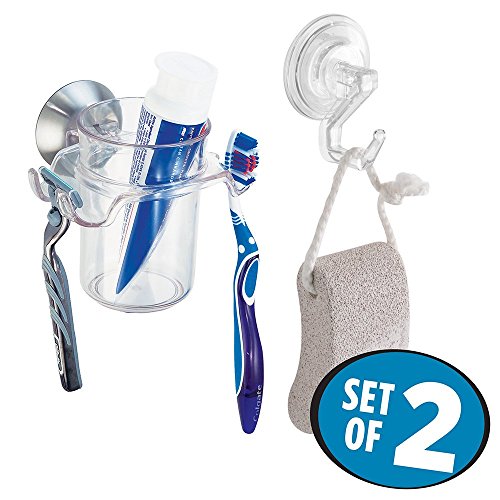 mDesign Power Lock Suction Toothbrush/Razor Holder and Loofah Hook - Pack of 2, Clear/Brushed