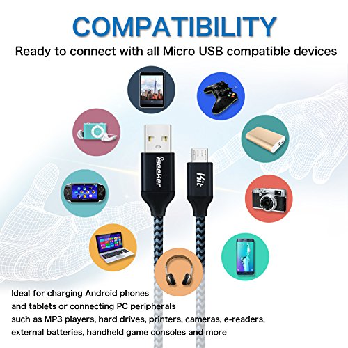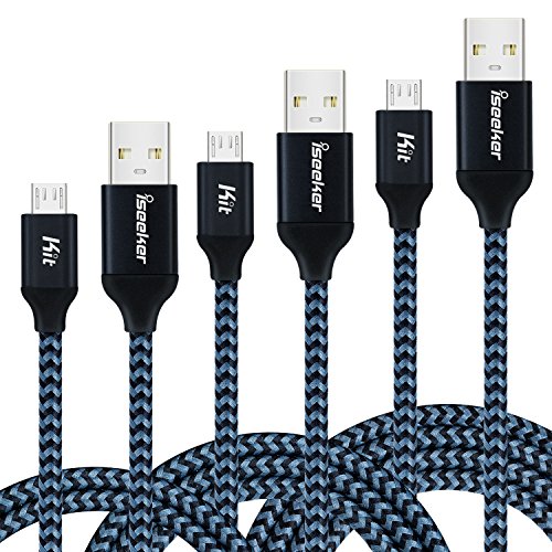 Micro USB Charging Cable, 3Pack (10ft/6ft/3.3ft)iSeekerKit USB 2.0 A Male to Micro Nylon Braided Cords with Aluminum Connector for Samsung, Android and more(Black)