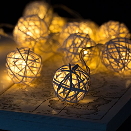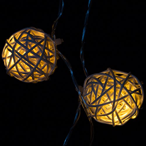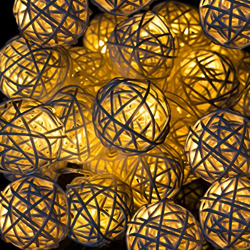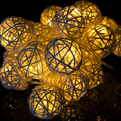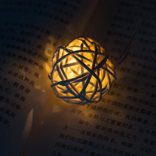 - 7FT feet long string with 20 rattan balls, 6" spacing between lamps and 9.8" tail with battery compartment.