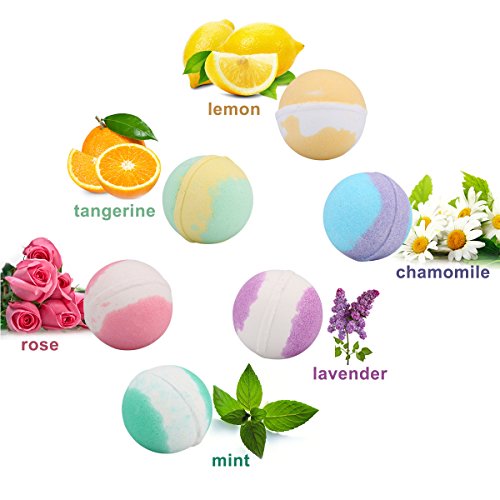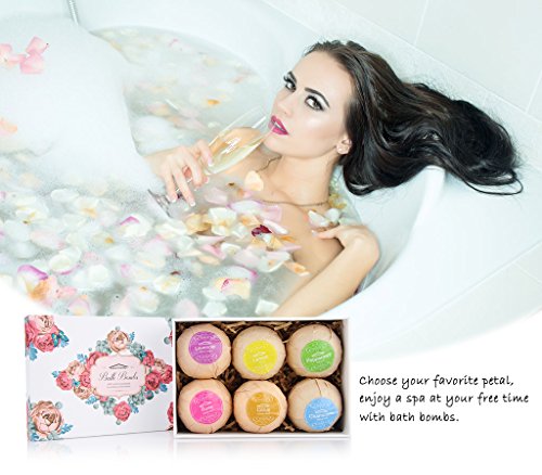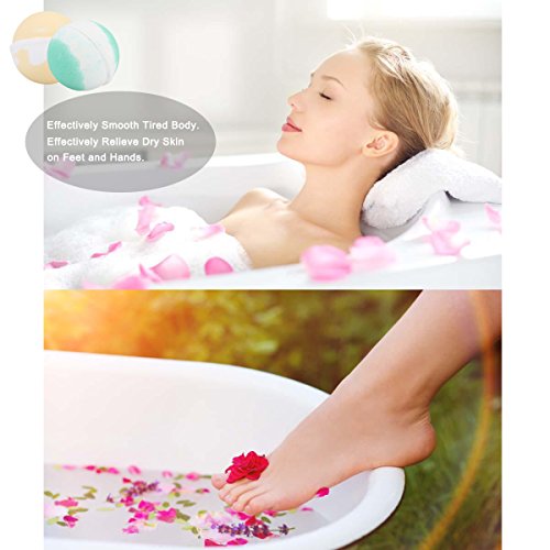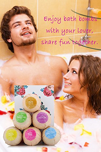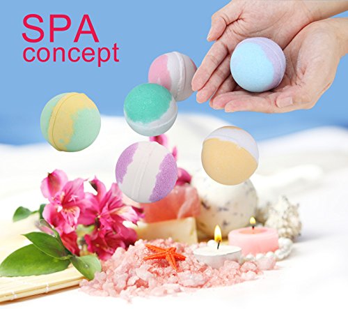 ♥COMPACT SIZE A bath bombs set of 6 unique 3.5 oz. No need to cut in half, you will simply drop one or more bombs you need in the bathtub to enjoy your bath. You can also soak your hands and feet in warm bath with half of bombs or more you like. No need to wash again after using.