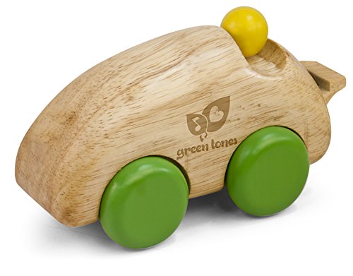 As a rolling race car, the large, bright green wheels are ready to race on any smooth surface