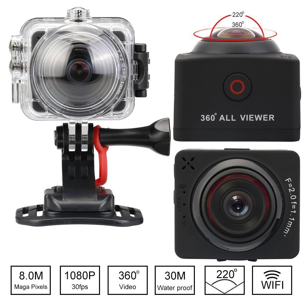 220 degree wide angle camera lens, waterproof function to depth of 30 meters, with plentiful accessories, high sky rose shoot, extreme sports such as underwater diving, outdoor sports as well as suitable for activities, bicycles,